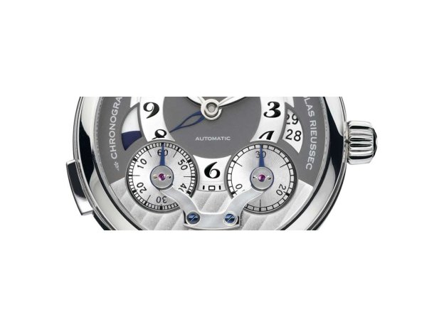 В основе создания первого механического калибра, изготовленного в часовых мастерских Montblanc в Ле Локль, лежит представленное в 1821 году изобретение Николя Риуссека. Однокнопочный хронограф Montblanc Nicolas Rieussec Monopusher Chronograph приводится в движение калибром Montblanc MB R100 с ручным заводом, оснащенным механизмом с классическим колонным колесом и вертикальной дисковой муфтой, которая обеспечивает передачу энергии на колеса хронографа, практически полностью исключая трение.